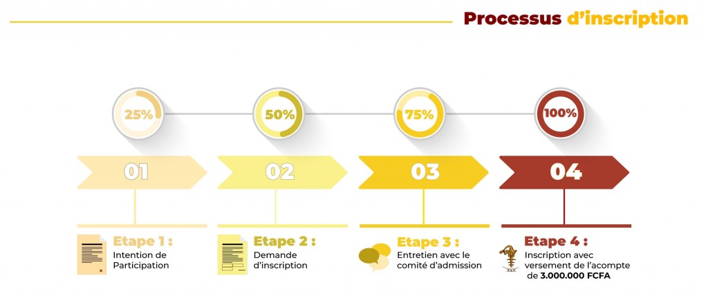 Une fois votre dossier accepté, vous pourrez procéder au versement de l’acompte de 3.000.000 FCFA pour rendre votre inscription effective.